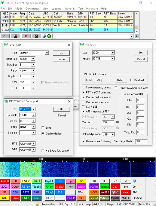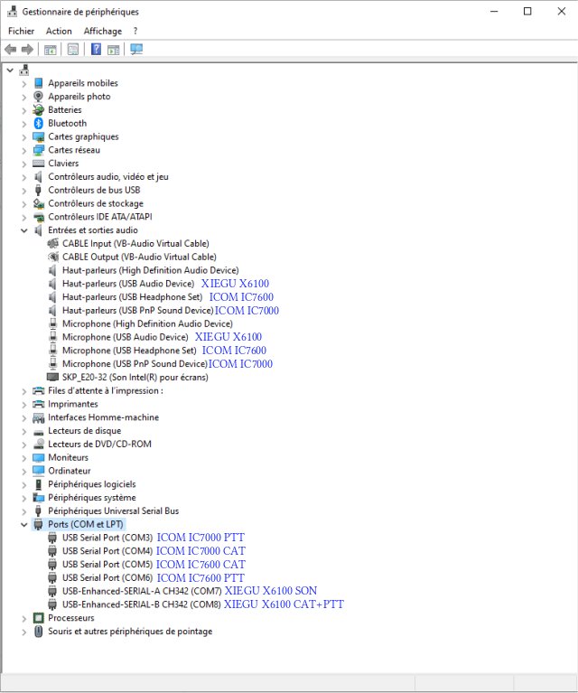 Configuration MIXW 3.2 pour utilisation seule avec XIEGU X6100. Déclarer le poste comme un ICOM IC 718. Le second port doit être DISABLE dans PTT/CW/TNC Serial Port, les commandes PTT et CW se font avec l'activtion de celles-ci dans le menu PTT et CAT. Les paramêtres micro et haut-parleurs de la carte son seront dans mon USB AUDIO DEVICE comme sur le PANNEAU DE CONFIGURAITON. Pour la configuration des autres logiciels cliquez sur le menu de gauche.